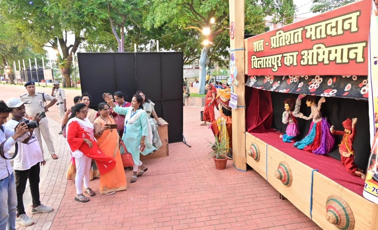 इस अवसर पर छत्तीसगढ़ निर्वाचन के लिए विशेष रूप से तैयार की गई कठपुतली चुनई चिरई की थीम पर आयोजित नृत्य के जरिए मनोरंजन के साथ-साथ मताधिकार के महत्व को दिखाया गया। वहीं 15 फिट की कठपुतली के नृत्य ने सबका मन मोह लिया, इसमें राजा और उनकी रानी तपस्या का नृत्य मतदाता जागरूकता के संदेशों से भरा रहा।