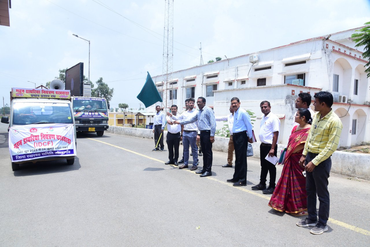 कोण्डागांव: मंगलवार को जिला कार्यलय से कलेक्टर दीपक सोनी द्वारा गहन डायरिया नियंत्रण पखवाड़े का शुभारंभ करते हुए गहन डायरिया नियंत्रण हेतु जिले भर में घुम-घुम कर जानकारी प्रदान कर लोगों को जागरूक करने हेतु जागरूकता रथ को हरी झण्डी दिखाकर रवाना किया गया। यह रथ जिले के सभी पांच विकासखण्डों में डायरिया के होने वाले कारण, लक्षण एवं बचाव के उपाय के बारे में जानकारी प्रदान कर लोगों को जागरूक करने का कार्य करेगें। इस अवसर पर जिला पंचायत सीईओ प्रेम प्रकाश शर्मा, सीएमएचओ डॉ0 आरके सिंह, जिला कार्यक्रम प्रबंधक भावना महलवार, न्यूट्रिशन इम्यूनाइजेशन के स्टेट प्रोग्रामर डॉ0 कुनाल पवार एवं सभागीय सलाहकार चंद्रजीत सिंह उपस्थित थे।