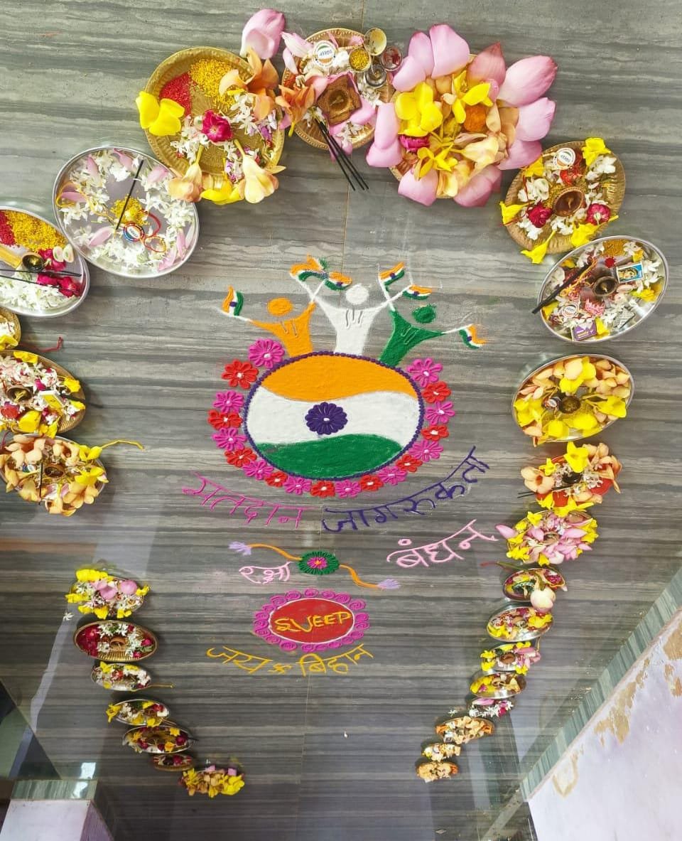 इसी प्रकार सीईओ योगेश्वरी बर्मन के नेतृत्व में बिलाईगढ़ के सामुदायिक भवन में मतदाता जागरूकता कार्यक्रम के तहत रंगोली और स्वीप रक्षाबंधन का आयोजन किया गया, जिसमें स्कूली बच्चों ने राखी बांधी।