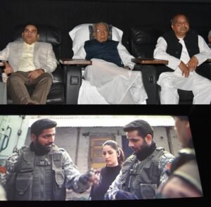 रायपुर, 12 मार्च 2024/ राज्यपाल श्री विश्वभूषण हरिचंदन ने आज जनप्रतिनिधियों, गणमान्य नागरिकों और मीडिया प्रतिनिधियों के साथ राजधानी रायपुर के स्थानीय मॉल में जाकर फिल्म ‘आर्टिकल 370‘ देखी। फिल्म देखकर उन्होंने कहा कि यह एक ऐतिहासिक फिल्म है। आजादी के 70 साल के बाद प्रधानमंत्री श्री नरेंद्र मोदी के नेतृत्व में यह साहसिक एवं महत्वपूर्ण फैसला लिया गया जिससे पूरे देश में देश भक्ति की भावना जागृत हुई और लोगों ने जम्मू कश्मीर से धारा 370 हटाने पर खुशी व्यक्त की। इस निर्णय से जम्मू कश्मीर के विकास का रास्ता खुल गया।