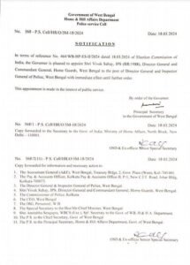 चुनाव आयोग ने सोमवार (18 मार्च, 2024) को पश्चिम बंगाल के पुलिस महानिदेशक (डीजीपी) को लोकसभा चुनाव को देखते हुए राजीव कुमार को हटाने का आदेश दिया। वहीं इसके कुछ देर बाद ही   को बंगाल के डीजीपी पद की जिम्मेदारी दी गई है।