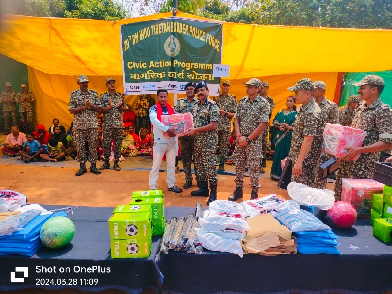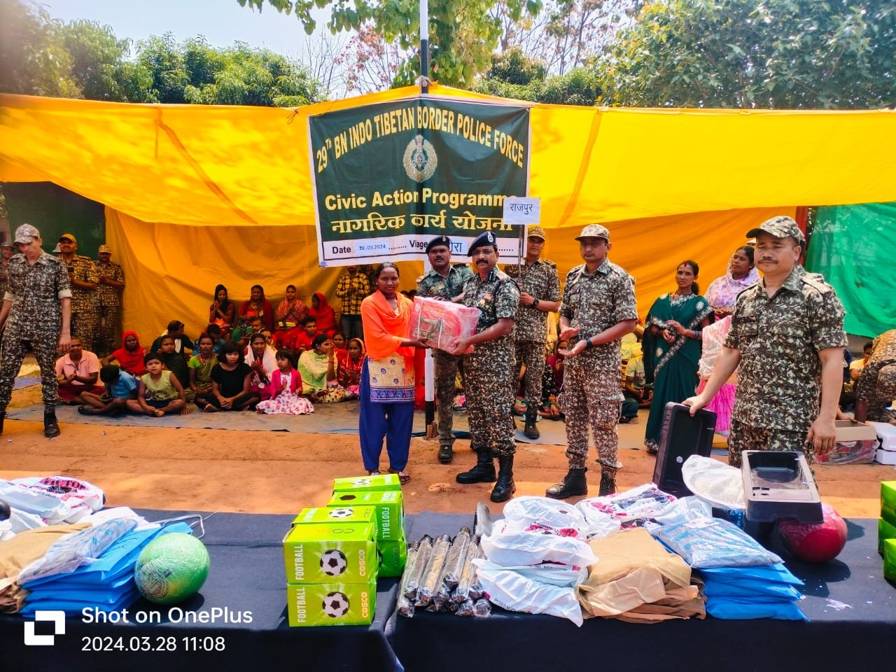 नक्सल प्रभावित इलाका ग्राम-धनोरा नारायणपुर में ई समवाय 29वीं वाहिनी, भा.ति.सी.पुलिस बल के द्वारा महेन्द्र प्रताप, सेनानी 29वीं वाहिनी एवं अन्य अधिकारियों के मार्ग दर्शन में दिनांक- 28.03.2024 को सिविक एक्शन कैम्प का आयोजन किया गया।