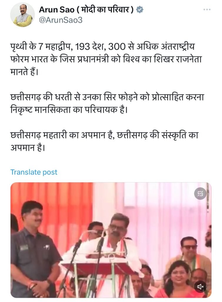 छत्तीसगढ़ की धरती से उनका सिर फोड़ने को प्रोत्साहित करना निकृष्ट मानसिकता का परिचायक है,